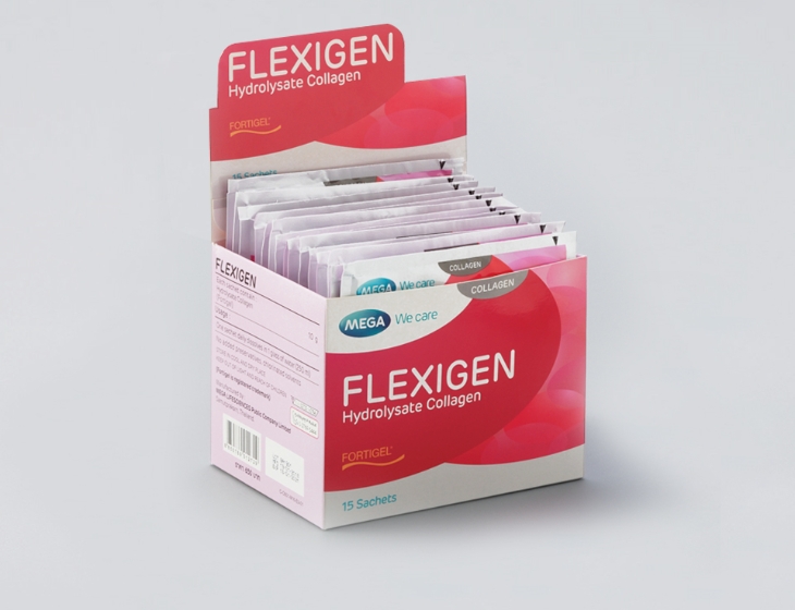 FLEXIGEN is a collagen supplement which contains FORTIGEL. FORTIGEL is a bioactive peptide formulation of collagen hydrolysate that stimulates human cartilage cells to build new joint collagen and proteoglycans. FLEXIGEN helps protect and improve joint, bone and skin health.