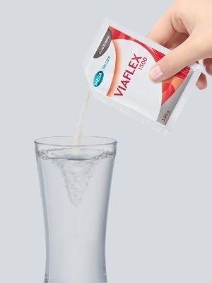 VIAFLEX contains a water-soluble formulation of glucosamine sulphate. Glucosamine promotes synthesis of the building blocks of cartilages, this helps restore and prevent further degradation of cartilage. It is particularly helpful in all forms of osteo-articular diseases like arthrosis, osteoarthritis, generalised joint pains and joint stiffness.